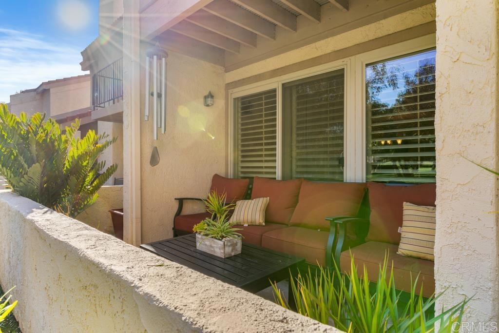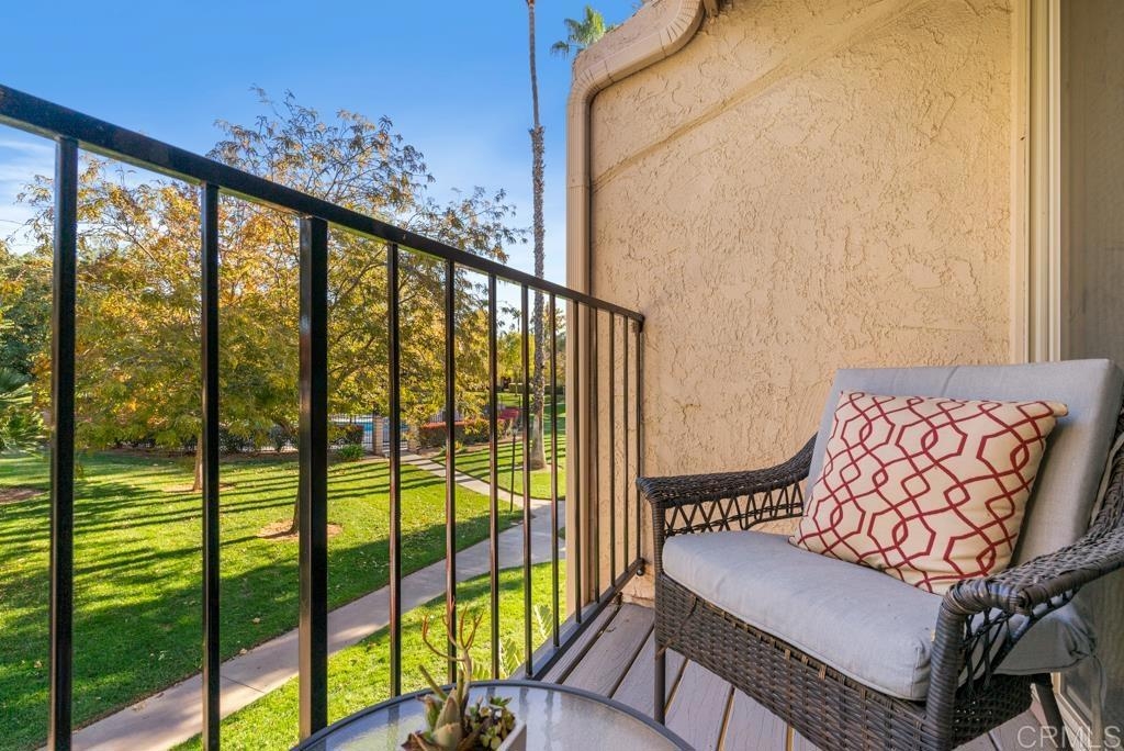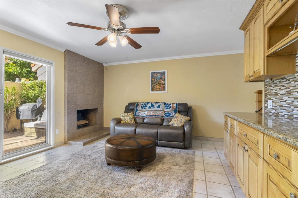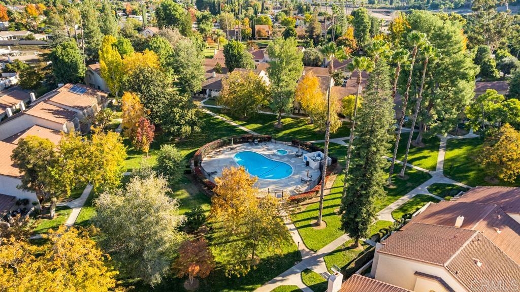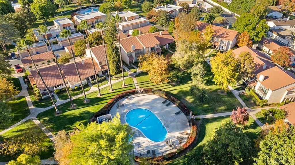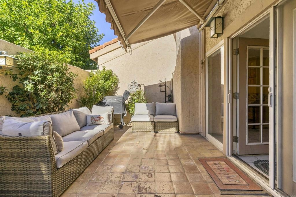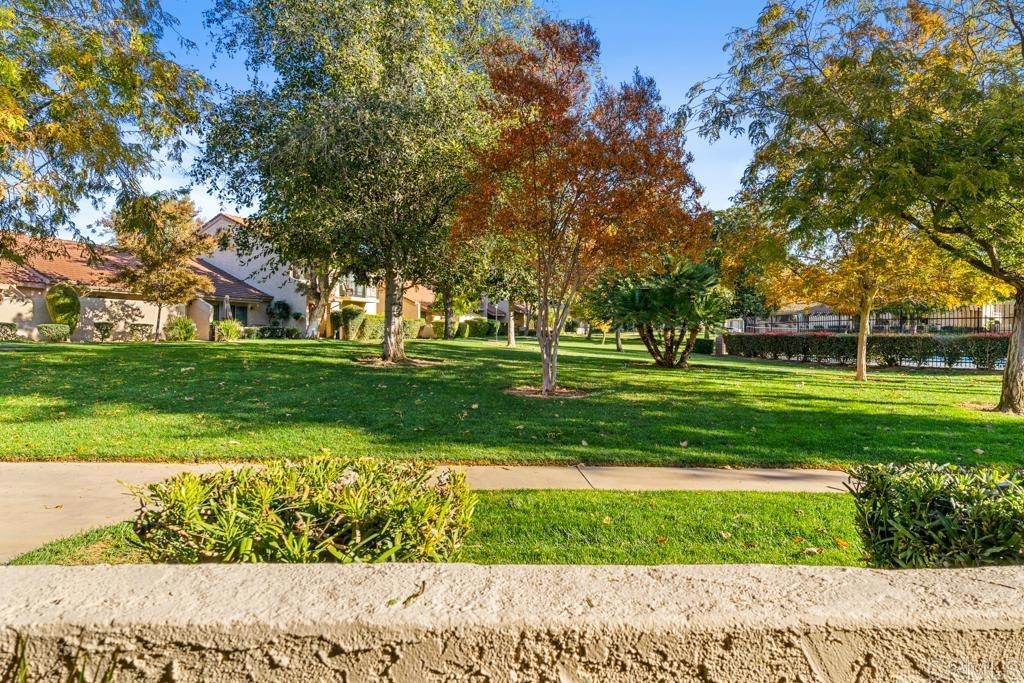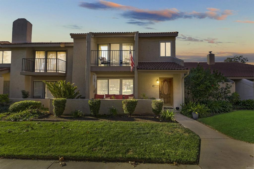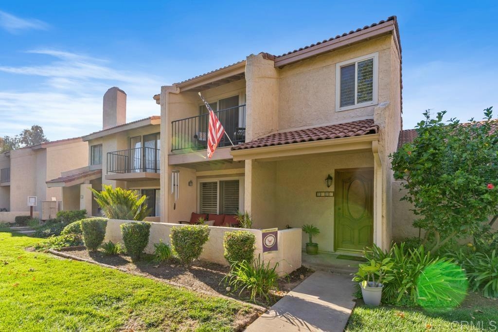 Beautifully upgraded townhome in the highly sought after Park Granada gated community. Set in an exquisitely maintained community park with 3 pools and 2 spa areas, this 2,000 square foot home has a remodeled kitchen with upgraded cabinets, granite counters and stainless steel appliances. Tiled floors throughout the kitchen and family room that features a granite covered buffet and fireplace. French doors that lead out to one of two patios with a retractable awning, and spanish pavers. The living room/dining room has a dry bar, 1/2 bath, plantation shutters, mirrored wall, custom entry door and, its own patio with a view of the greenbelt/park. Upstairs, you'll find the spacious master bedroom that features a vaulted ceiling, plantations shutters and its own balcony with view. The master bath features marble throughout with double sinks. Two more guest bedrooms with mirrored closet doors and plantation shutters, as well as a second full bath. A drop down ladder leads to huge attic space for storage. Manufactured wood flooring throughout. Detached 2 car garage. Secure gated community.
