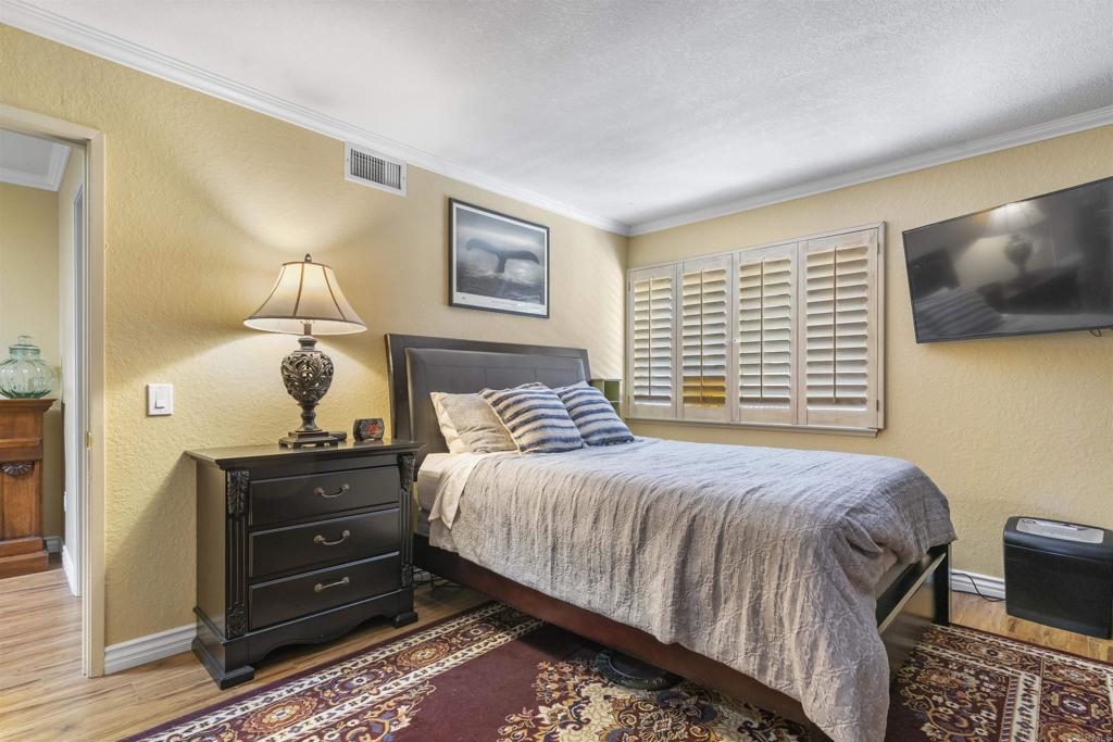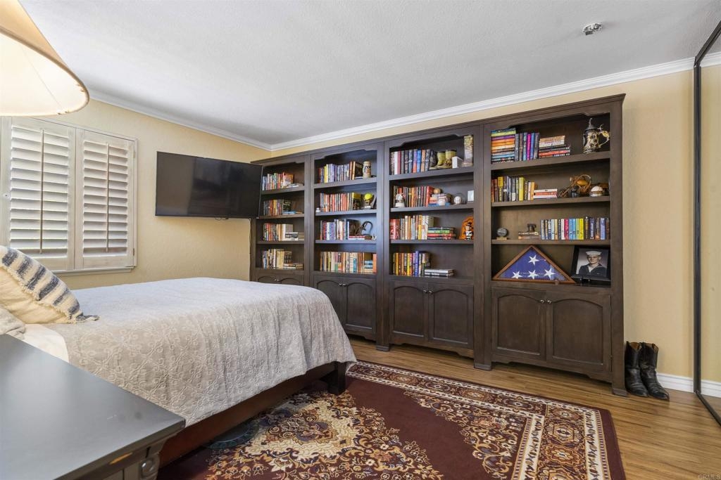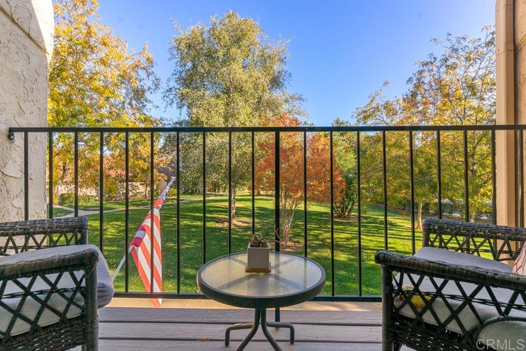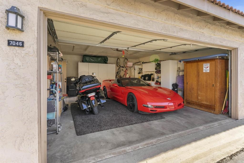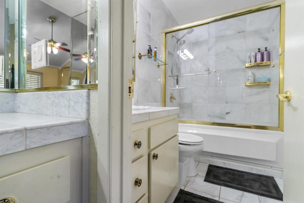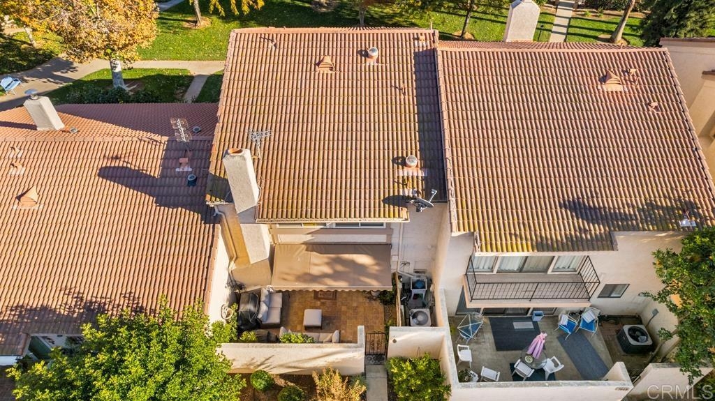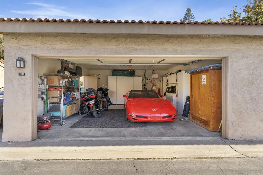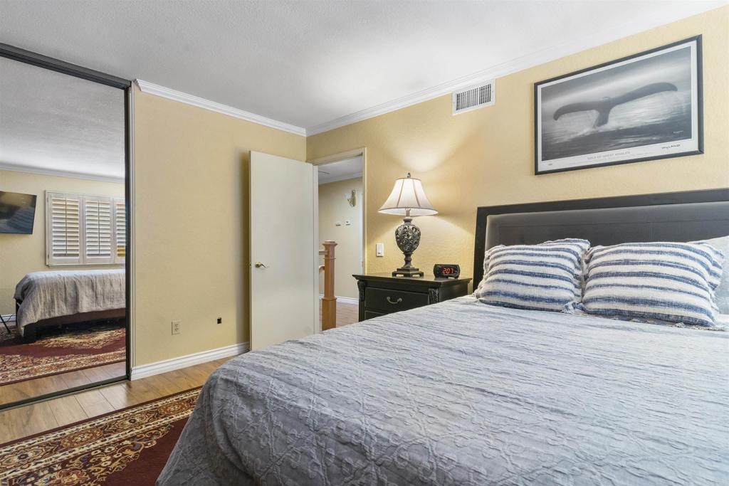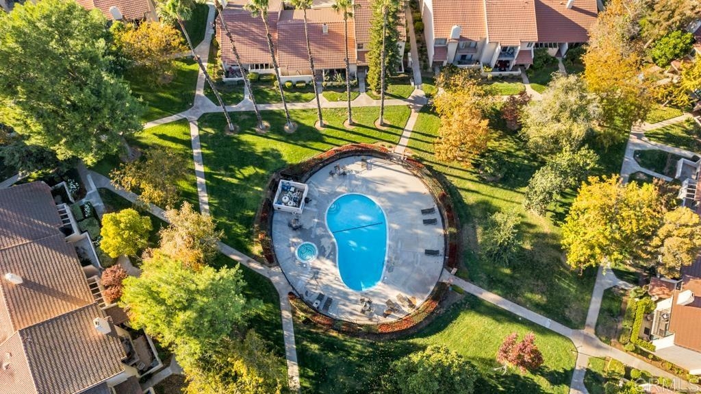Beautifully upgraded townhome in the highly sought after Park Granada gated community. Set in an exquisitely maintained community park with 3 pools and 2 spa areas, this 2,000 square foot home has a remodeled kitchen with upgraded cabinets, granite counters and stainless steel appliances. Tiled floors throughout the kitchen and family room that features a granite covered buffet and fireplace. French doors that lead out to one of two patios with a retractable awning, and spanish pavers. The living room/dining room has a dry bar, 1/2 bath, plantation shutters, mirrored wall, custom entry door and, its own patio with a view of the greenbelt/park. Upstairs, you'll find the spacious master bedroom that features a vaulted ceiling, plantations shutters and its own balcony with view. The master bath features marble throughout with double sinks. Two more guest bedrooms with mirrored closet doors and plantation shutters, as well as a second full bath. A drop down ladder leads to huge attic space for storage. Manufactured wood flooring throughout. Detached 2 car garage. Secure gated community.