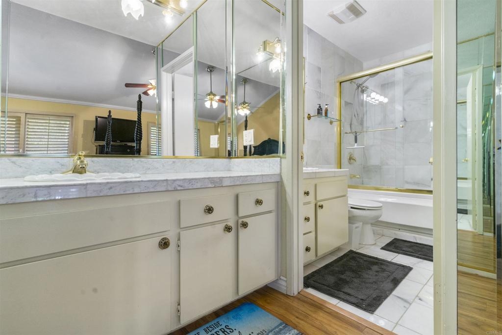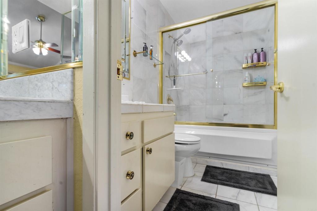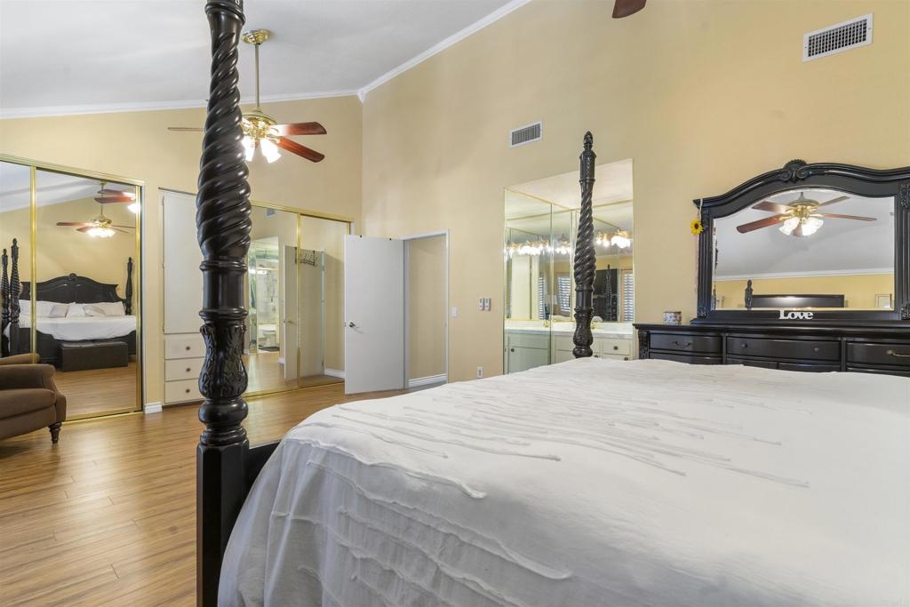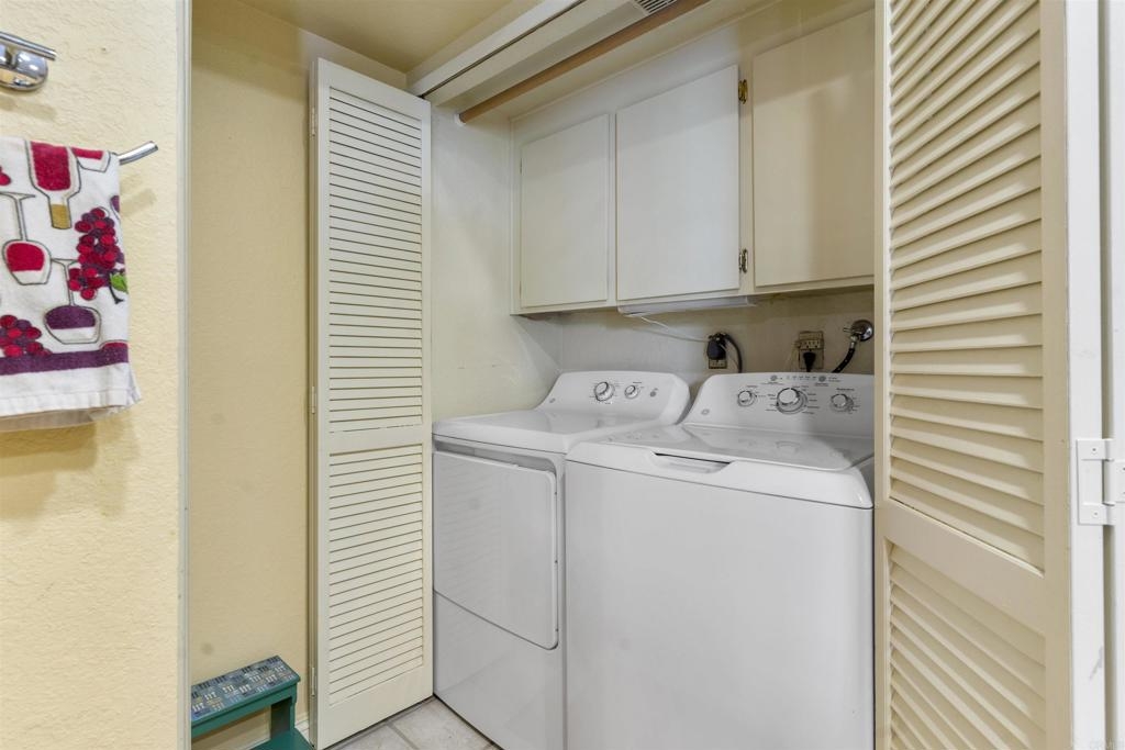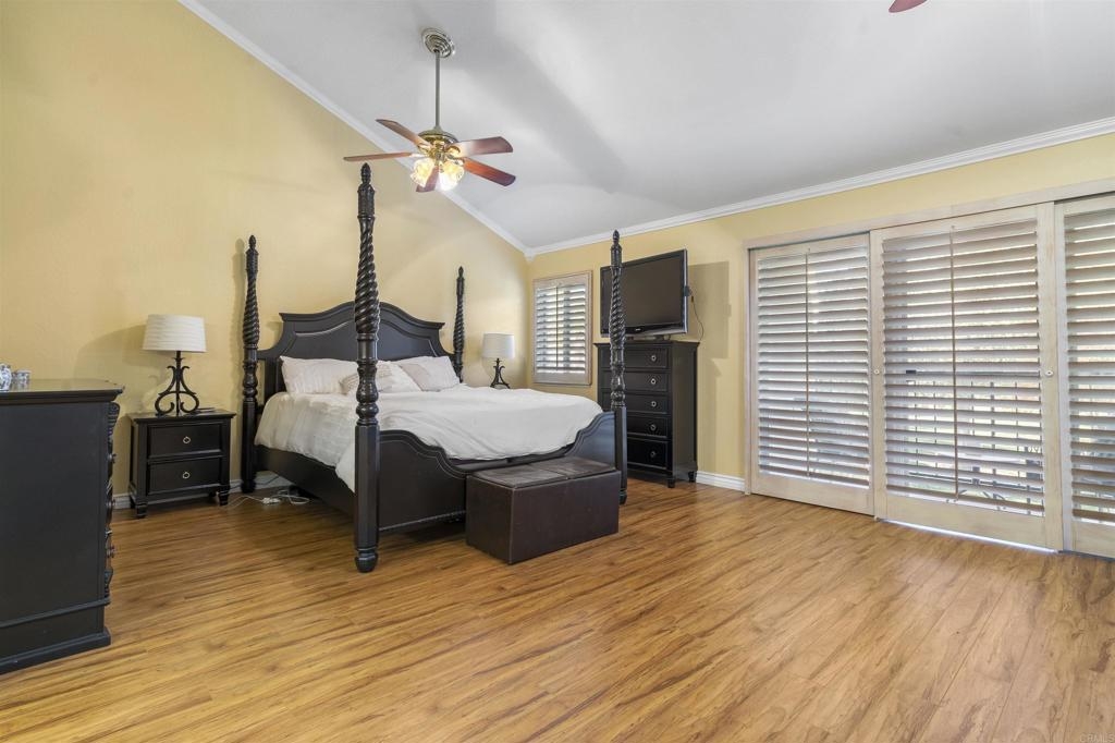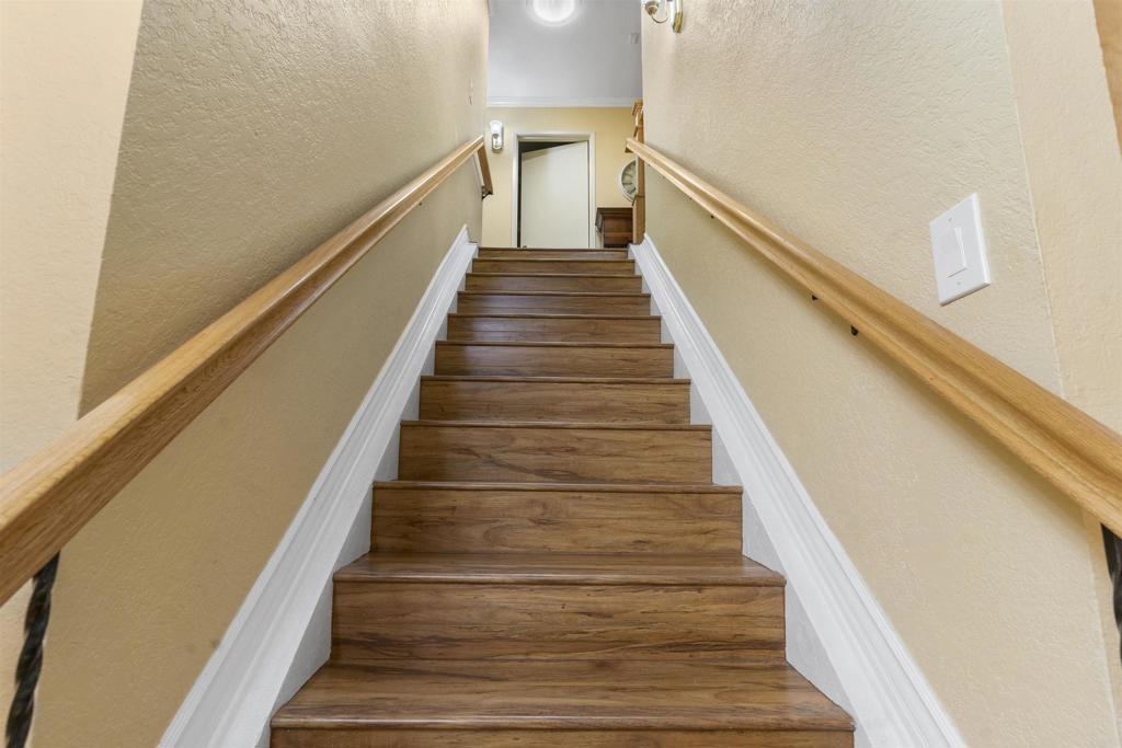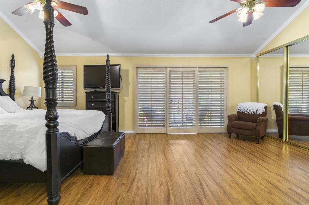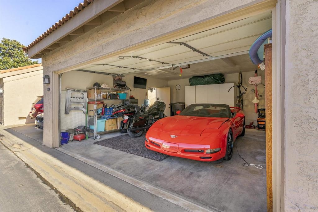 Beautifully upgraded townhome in the highly sought after Park Granada gated community. Set in an exquisitely maintained community park with 3 pools and 2 spa areas, this 2,000 square foot home has a remodeled kitchen with upgraded cabinets, granite counters and stainless steel appliances. Tiled floors throughout the kitchen and family room that features a granite covered buffet and fireplace. French doors that lead out to one of two patios with a retractable awning, and spanish pavers. The living room/dining room has a dry bar, 1/2 bath, plantation shutters, mirrored wall, custom entry door and, its own patio with a view of the greenbelt/park. Upstairs, you'll find the spacious master bedroom that features a vaulted ceiling, plantations shutters and its own balcony with view. The master bath features marble throughout with double sinks. Two more guest bedrooms with mirrored closet doors and plantation shutters, as well as a second full bath. A drop down ladder leads to huge attic space for storage. Manufactured wood flooring throughout. Detached 2 car garage. Secure gated community.