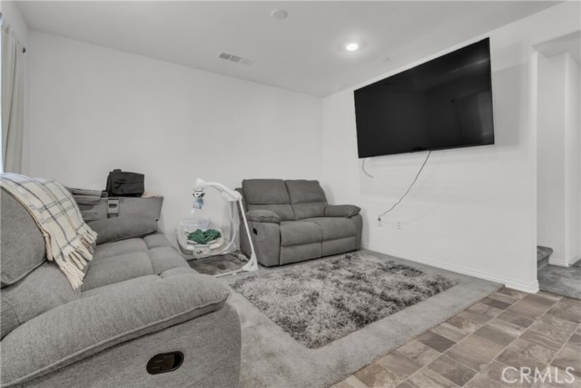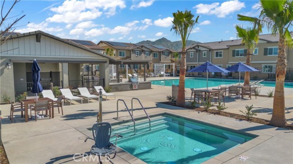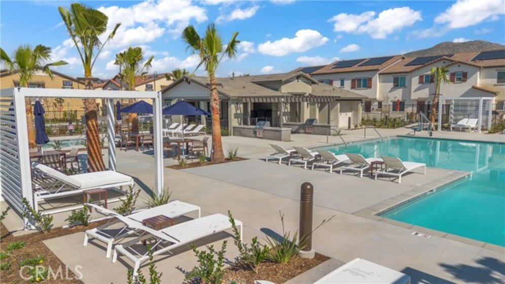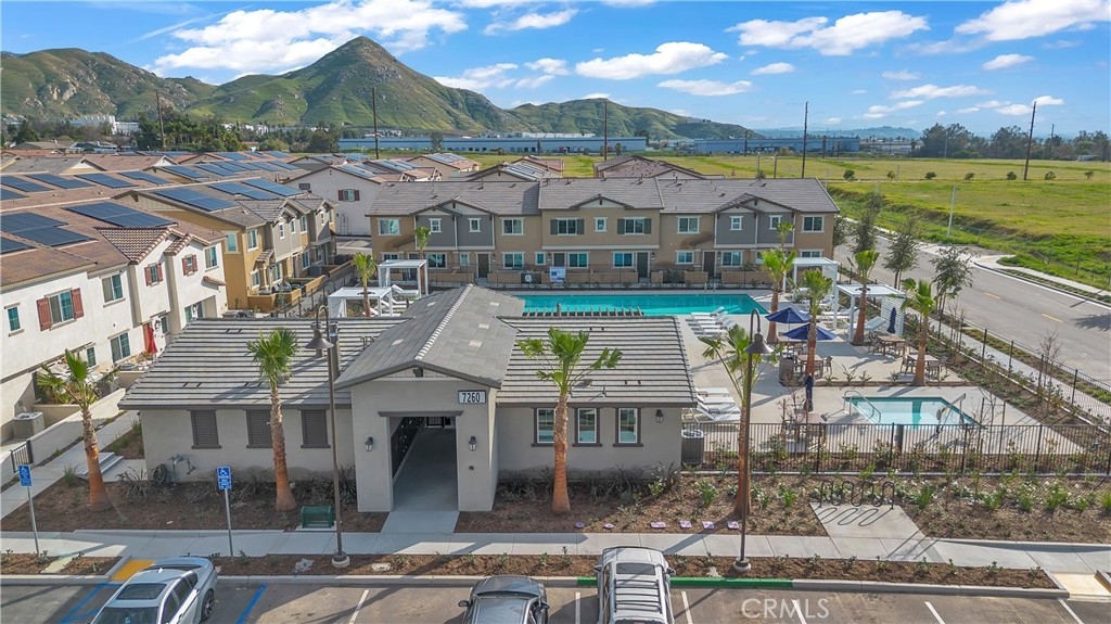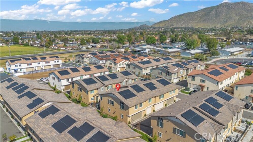 Welcome to 7179 Olive Grove Street in Riverside — a beautifully maintained, nearly new end-unit home that offers the perfect opportunity for first-time buyers ready to step confidently into homeownership. Built just two years ago, this 3-bedroom, 2.5-bath residence combines modern style with everyday comfort. As an end unit, the home enjoys added privacy and enhanced natural light, creating a bright and inviting atmosphere throughout. The open-concept kitchen and living area is ideal for entertaining or relaxing at home, featuring granite countertops, crisp white cabinetry, and a seamless flow that makes the space feel both functional and welcoming. Upstairs, you'll find comfortably carpeted bedrooms designed for rest and relaxation, including a spacious primary suite with a cozy loft just outside the bedroom — perfect for a home office, reading nook, or flex space. The conveniently located upstairs laundry room adds everyday practicality, keeping chores simple and close to the bedrooms. Energy efficiency is a standout feature, with solar panels paired with a Franklin battery system to help reduce utility costs and provide added peace of mind. An attached two-car garage offers convenience and extra storage, while the community amenities enhance your lifestyle with access to a pool and clubhouse. Even better, the monthly HOA includes Wi-Fi, adding extra value and simplifying your monthly expenses. Modern, energy-efficient, private, and move-in ready — this is an exceptional opportunity to own a nearly new home in one of Riverside’s desirable communities.