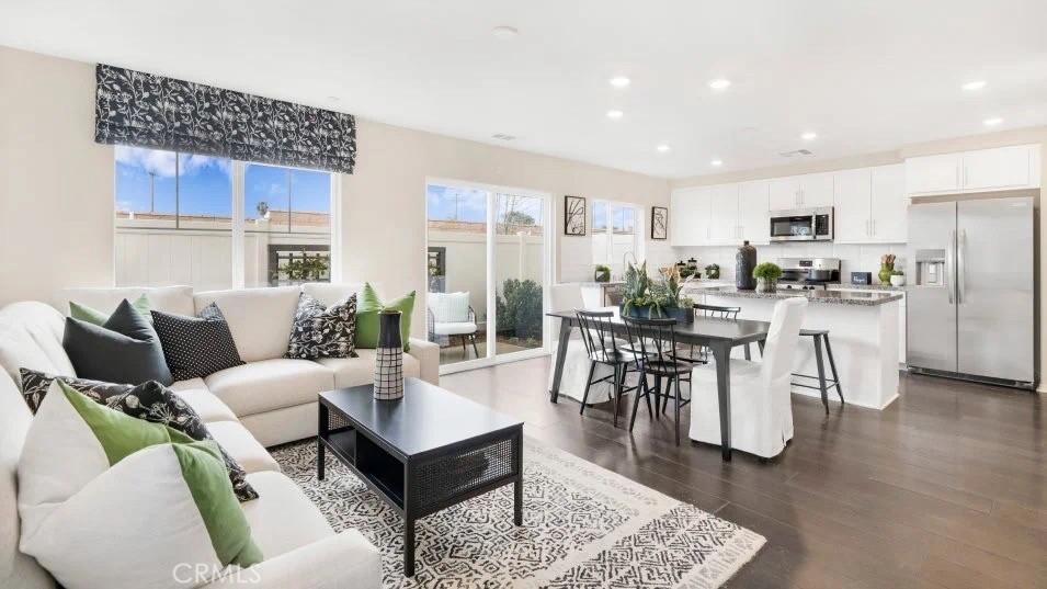 NEW CONSTRUCTION! Ready for Immediate Move-in! The first floor of this two-story home shares an open layout between the kitchen, dining area and Great Room, making entertaining easy. Upstairs is a versatile loft that can double as an additional shared living space and home office, depending on the household's needs. There are two secondary bedrooms on the second floor, along with a luxe owner's suite with an en-suite bathroom and a large walk-in closet. ADA compliant home. The kitchen features New Caledonia granite countertops and White cabinetry. The Gardens is a new collection of upscale townhomes for sale coming soon to the Highgrove Town Center master-planned community in Highgrove, CA. Residents enjoy prime amenities within the community such as social clubhouse, sparkling swimming pool, barbecue areas, tot lot and more. For local outdoor recreation, Box Springs Mountain Reserve Park features trails for hiking, mountain biking and horseback riding. Shopping and dining options at Downtown Riverside and the Mission Inn are just a 10-minute drive, while UCR is even less and nearby K-12 schools are less than three minutes away.