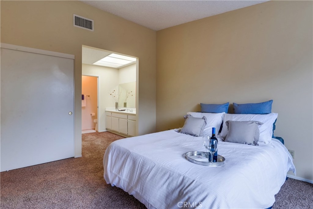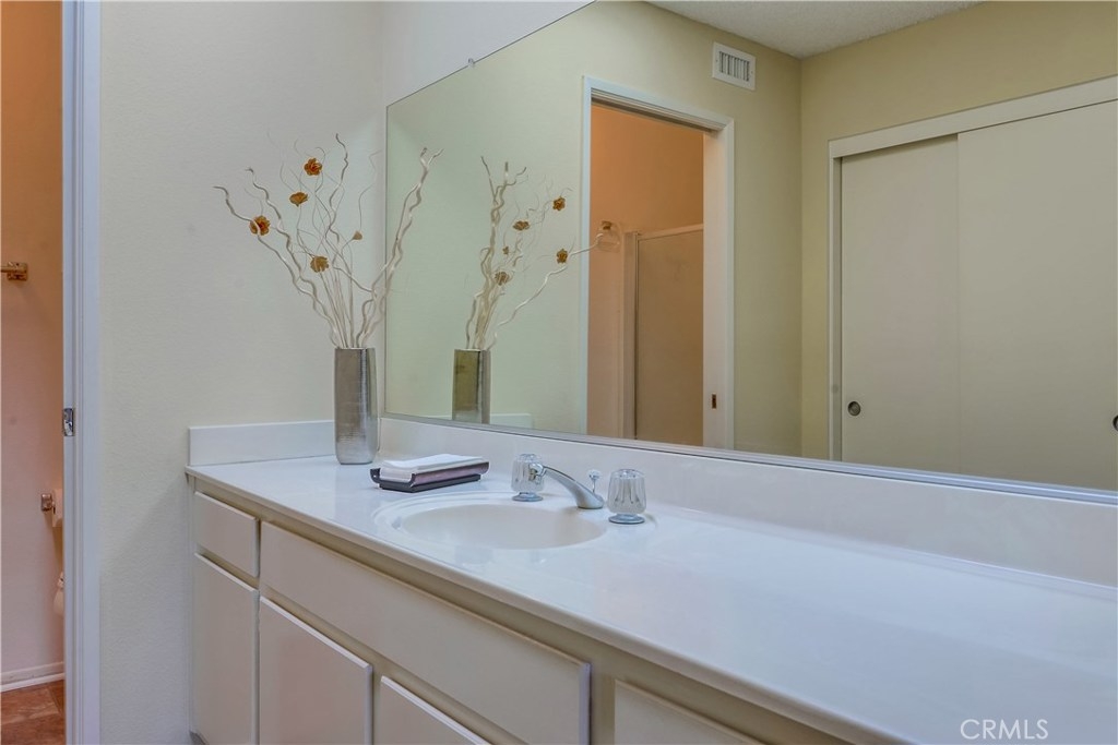 What a wonderful condo located in the gated community of BARCLAY SQUARE only 66 units total, a pool and spa, lush green space, RV parking & no cost storage (included in association fee and based on application & availability). Freshly painted inside, this light & airy home offers new flooring, new toilets and a new shower door in the master bathroom. You will love how light and airy it feels in here! When you enter this home, you'll notice the high vaulted ceiling over the living room. Enjoy the toasty brick fireplace all holiday season long. The dining area is open to the kitchen with plenty of storage space. Another soaring vaulted ceiling is over the spacious master suite with a sliding glass door to the patio and double closets. The ensuite bathroom offers a long vanity and new shower door. There are 2 more bedrooms; one is perfect as an office, game room or formal dining room. Concrete patio is waiting for your next backyard BBQ. Great location, near the 215 freeway for Orange County Commuters, not far from Riverside University and the Tyler/Galleria Mall (just one freeway exit away). This property is lovingly cared for by the original owner. Take a closer look at this exceptional home today!