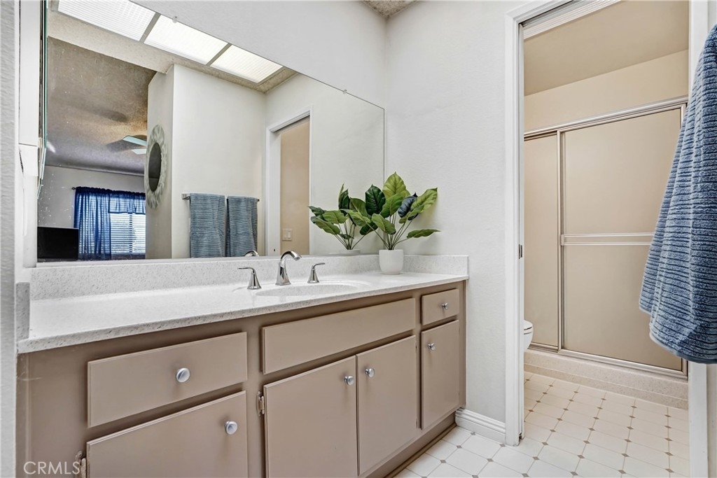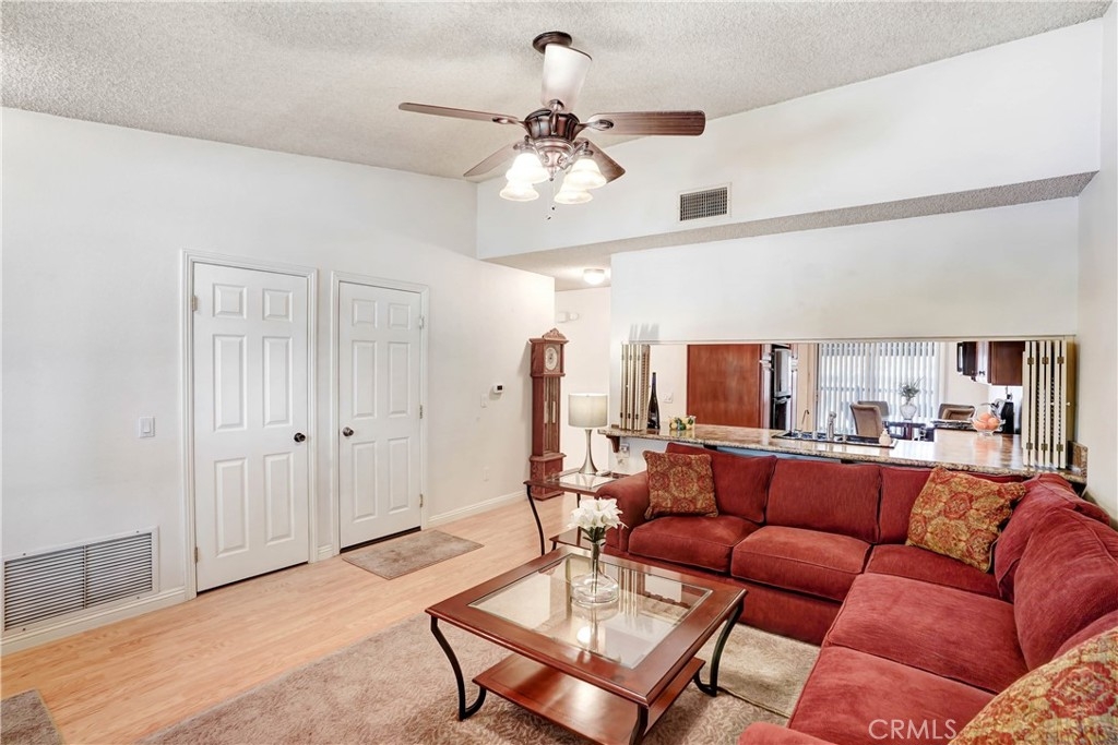 Welcome to this single story beauty, located in the Desirable Gated Community of Barclay Square. Interior location within a quick walk to the community pool & spa. This home boasts living room with vaulted ceiling, brick fireplace that opens to remodeled kitchen and dining area. The kitchen features new cabinets with roll out shelves, wine bottle rack, recessed lights, newer appliances and abundant counter space. Both bedrooms have vaulted ceilings, new carpet and mirrored closet doors. Both bathrooms have been tastefully updated and includes new toilets, vinyl flooring, new shower/tub doors, skylight in master bath & recessed lights. Updates included newer AC & forced air unit, new wifi garage door opener, laminate wood floors, ceiling fans in every room and wifi thermostat. Enclosed patio offers more living space and room to relax and entertain. The very private backyard features low maintenance landscape including artificial grass, sprinkler timer & drip system for flower beds, backyard lights and fountain. Attached 2 car garage with direct access and laundry. This Community Offers Many Guest Parking Areas, Park, Association Pool, RV Storage Area and Manicured Landscape. Centrally located minutes off the 91 fwy, between 15 and 215 fwys.