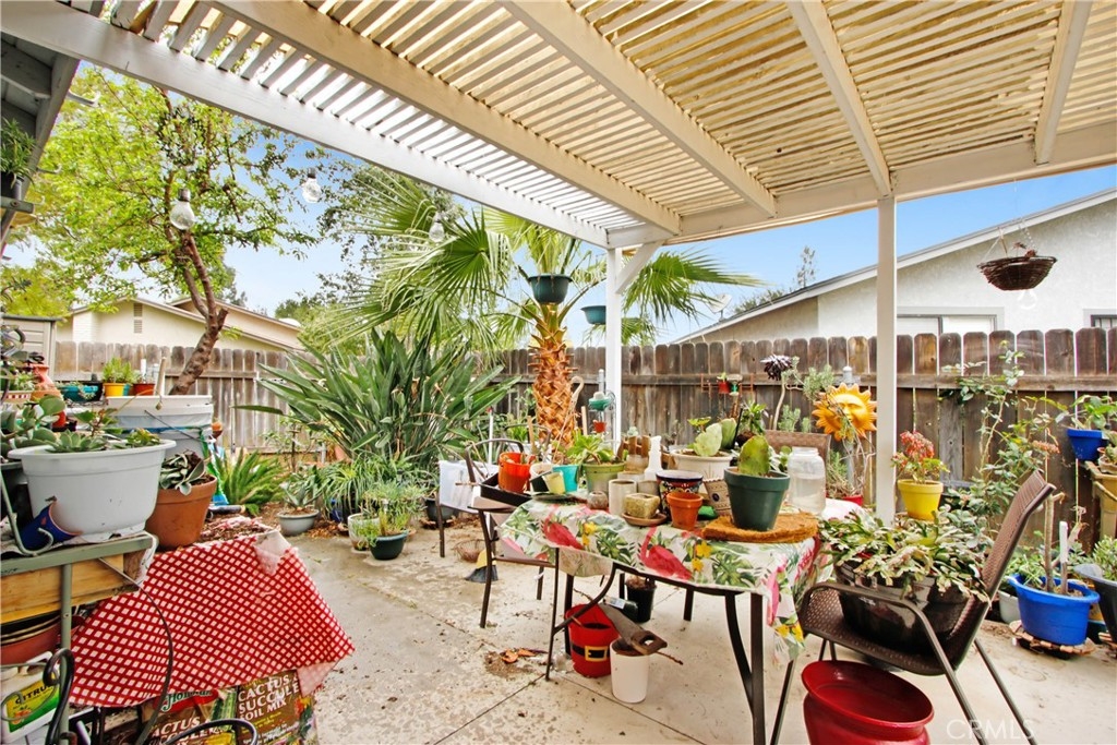 Welcome to this single story beauty, located in the Desirable Gated Community of Barclay Square. One of the best locations in the community this end unit with private patio is within a quick walk to the community pool & spa. This home boasts an open living area with fireplace and vaulted ceilings. Spacious kitchen with breakfast bar, stainless steel appliances and breakfast nook area. Recent updates include: double paned noise reducing windows, fresh interior paint, new garage door opener system w/openers and a wireless access keypad, new laminate flooring with Eco-UltraQuiet premium acoustical w/moisture barrier underlayment, 3 inch baseboards and a Trane XB central heating and AC system. The master bedroom is spacious with a vaulted ceiling and a sliding glass door to the private fenced patio/yard area. The master bathroom features dual sinks and walk in closet. Two additional bedrooms. The hall bathroom has been updated with a new vanity, faucet, toilet and shower head. The landscaped backyard patio area with exterior entrance has a sunshade and is surrounded by plants, fruit trees and also offers extra storage with a Rubbermaid shed. Washer dryer hookups are in the attached 2 car garage. Community amenities include: pool, spa, and RV/trailer parking. The HOA dues include water.