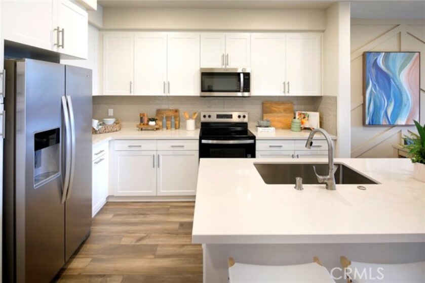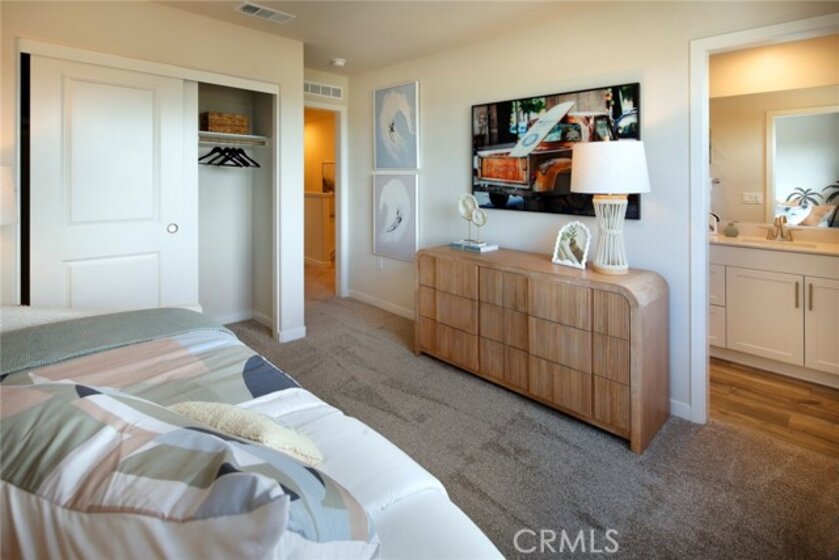 Welcome to Sagecrest by Century Communities! This beautiful Tri-level Gated townhome community is located in the heart of Riverside close by the 91 freeway right off Van Buren Blvd. very close to shopping, restaurants and California Baptist University as well as UC Riverside. After entering in from your private enclosed patio, heading up to the second floor you enter a spacious Kitchen with large island and dining area that has a private balcony off Livingroom. The kitchen features " Mezzo White" cabinets, quartz counters and back-splash. The second level also includes a bedroom and full bathroom. Going up to the third level you will find an Owner's Suite which includes bathroom with double sinks, walk-in shower and walk-in closet. Finishing the 3rd level there's an additional bedroom with its own private full bathroom and walk-in closet. Laundry room is also conveniently located on third level. Come see this amazing community in person, Sagecrest is a Gated Community and will include a playground, dog park, shade structures and BBQs and more!