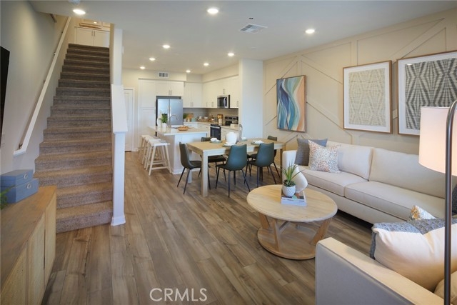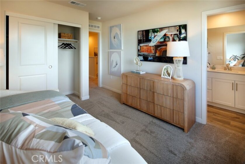 Welcome to Sagecrest by Century Communities! This beautiful Tri-level Gated townhome community is located in the heart of Riverside close by the 91 freeway right off Van Buren Blvd. very close to shopping, restaurants and California Baptist University as well as UC Riverside. After entering in from your private enclosed patio, heading up to the second floor you enter a spacious Kitchen with large island and dining area that has a private balcony off Livingroom. The kitchen features " Prelude White" cabinets, quartz counters and back-splash. The second level also includes a bedroom and full bathroom. Going up to the third level you will find an Owner's Suite which includes bathroom with double sinks, walk-in shower and walk-in closet. Finishing the 3rd level there's an additional bedroom with its own private full bathroom and walk-in closet. Laundry room is also conveniently located on third level. Come see this amazing community in person, Sagecrest is a Gated Community and will include a playground, dog park, shade structures and BBQs and more!