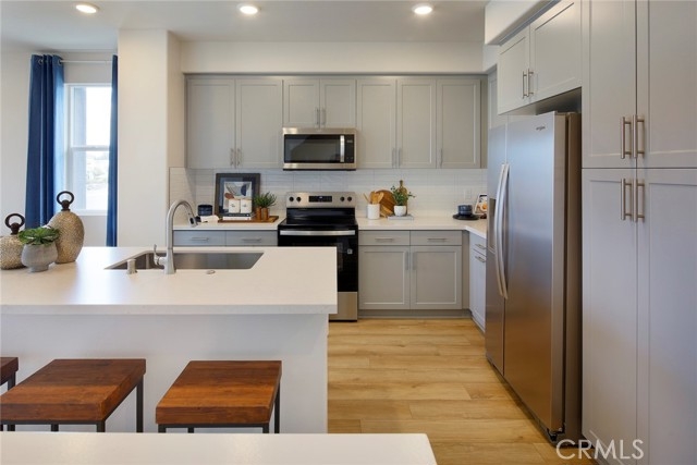 Welcome to Sagecrest by Century Communities! This beautiful Tri-level Gated townhome community is located in the heart of Riverside close by the 91 freeway right off Van Buren Blvd. very close to shopping, restaurants and California Baptist University as well as UC Riverside. After walking through your private patio, you will enter to the first floor you will find a jr. suite with its own walk-in closet and full bathroom. Heading up to the second floor you enter a spacious Kitchen with a large island and dining area open to living room which has a large private balcony with city views. The kitchen features " Aria Stone Gray" cabinets, quartz counters and a stylish backsplash. The second level also includes a bedroom and full bathroom. Going up to the third level you will find a spacious Owner's Suite which includes large bathroom with double sinks, walk-in shower and walk-in closet. Finishing the 3rd level there's an additional bedroom with its own private bathroom and walk-in closet. Laundry room is also on third level. Come see this amazing community, Sagecrest is a Gated Community and will include a playground, dog park, shade structures and BBQs and more!